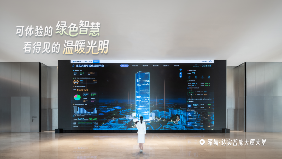 达实智能大厦是达实智能自主投资建设的总部大楼,投资11亿。大厦应用自主研发的达实AIoT 智能物联网管控平台、空间应用系统及产品,链接20000多个设备,服务了将近5000多个手机终端,实现了降低建筑能耗25%、精简物业管理岗位25%、提升出租收益25%,荣获国际 LEED 绿色建筑顶级的铂金级设计和运营认证,成为绿色智慧、温暖光明的标杆性建筑。