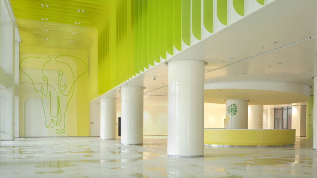 项目采取庭院化设计,在建筑内部形成众多尺度宜人的阳光庭院,为院区提供了充裕的阳光、良好的通风条件和绿景环境。裙楼的外立面采用垂直绿化设计方式,约12%的建筑立面被绿色覆盖,将绿色面积重新归还给城市。