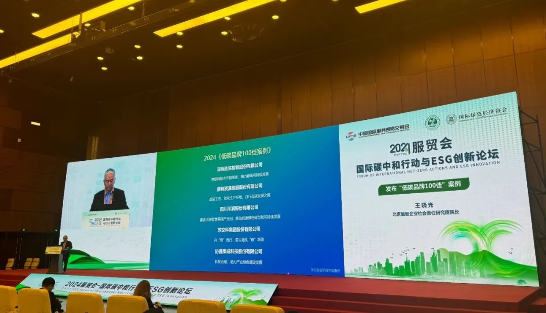 2024 年中国国际服务贸易交易会在北京举办。达实智能受邀前往北京参会,并在“碳中和行动与企业 ESG 创新论坛中荣获《低碳品牌 100 佳》案例。