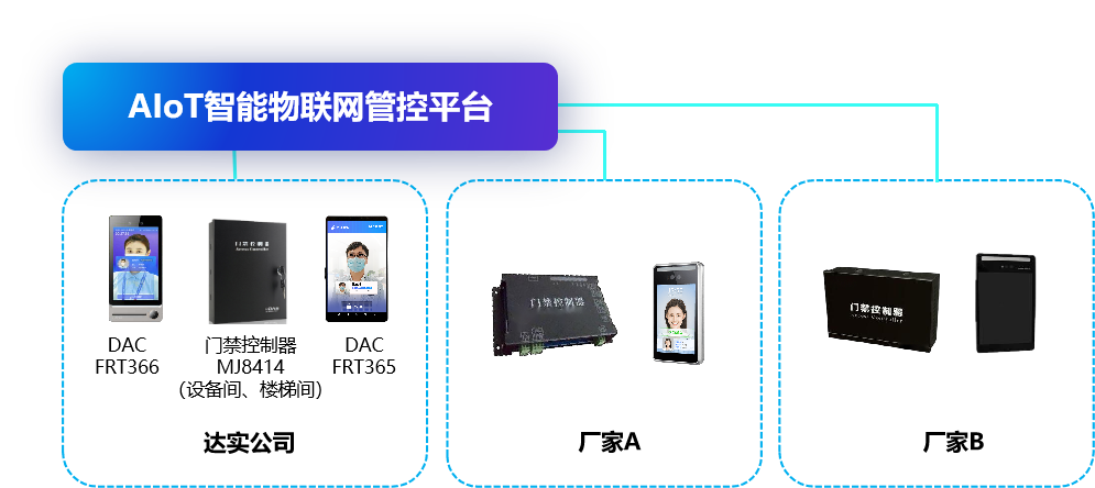 达实AIoT平台课用于机电设备的实时数据接入和控制,支持行业/私有协议接入,如Modbus TCP、OPC-UA、BACnet、电梯等协议;平台还可以可以对接应用系统的数据接入,支持达实、大华、海康等门禁主流品牌,支持达实、达实云、科拓、捷顺、朗麦、立方等停车场主流品牌。平台也可能接入各类视频数据,支持海康、大华、宇视、 霍尼韦尔 等主流品牌。