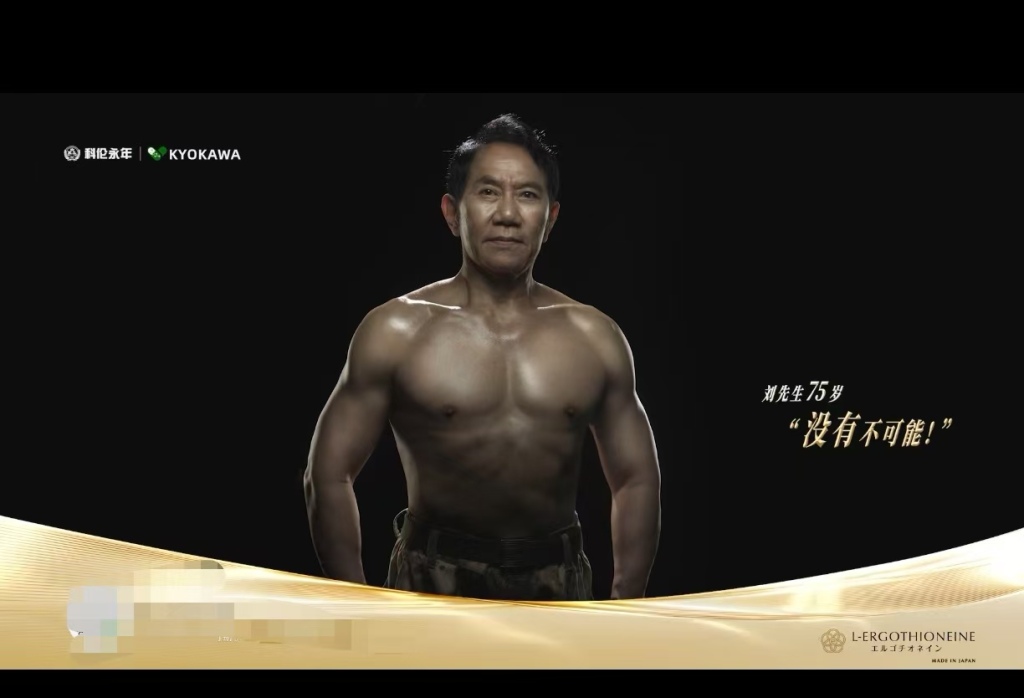 麦角硫因的近期热度是科伦药业带起来的。5月8日,科伦集团发布了14秒的视频内容宣传其麦角硫因胶囊。让这条视频迅速走红的重要原因是75岁的科伦药业董事长刘革新亲自出镜,裸露的上半身可见线索清晰的肌肉,广告词也与刘革新本人密切关联:刘先生75岁——“没有不可能!”麦角硫因,生命长青。