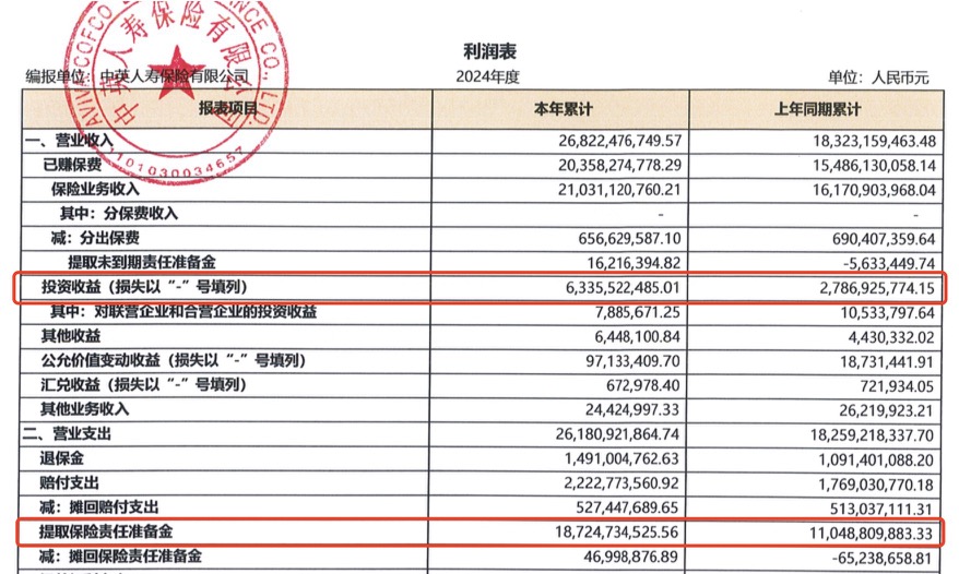 与此同时,对方还表示中英人寿2024年净利润大幅变动与会计准则切换无关,目前中英人寿仍然沿用旧会计准则,如果变动会先行披露。另外,对于2024年投资收益的大幅增加,对方表示权益以及固收类资产均在投资收益上有所体现。