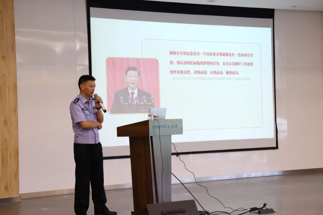 为进一步提升公司员工网络安全意识和能力,普及网络安全知识,推进公司开展网络信息安全建设,8月22日下午,尤夫股份在三楼报告厅开展主题为《工业数字化革命视角下工业制造企业网络安全的思考》的网络安全培训讲座。本次培训特邀湖州市信息网络安全协会会长黄海舫讲师,为公司领导和相关部门员工开展了一次网络安全专项培训。