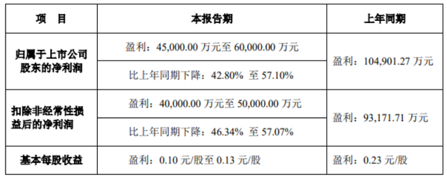 同时,兆驰股份预计实现扣除非经常性损益后的净利润为4亿元-5亿元,同比下降46.34%-57.07%,上年同期盈利为9.32亿元。