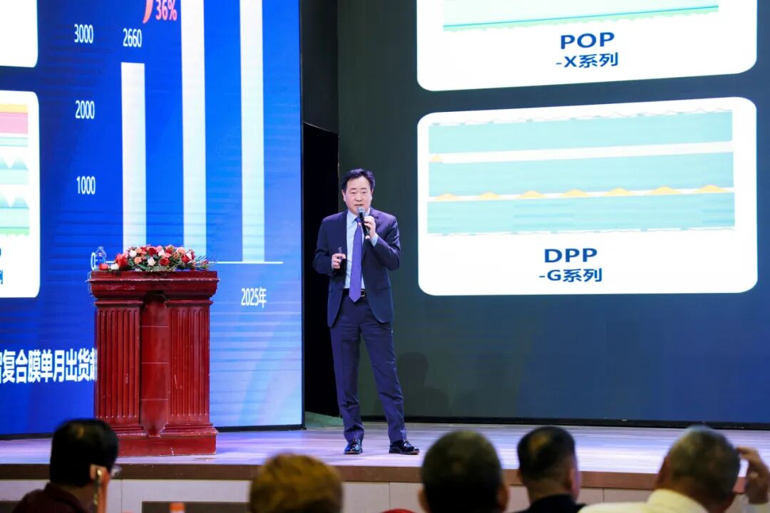 值得关注的是,董事长张彦博士连续五年受邀作为战略合作伙伴代表登台发言。在本次大会上,张彦博士结合显示行业发展趋势与双方合作实践,分享了深度协同的宝贵经验与未来规划。张彦博士指出,显示行业正迎来 “大展宏图”与“亮出真像” 的双重变革:一方面,终端产品尺寸持续向大尺寸演进,从曾经的 14-29 英寸到如今 55、65、75 英寸成为主流,85、98 英寸乃至100英寸以上巨幕产品快速崛起,全球显示市场平均尺寸稳步提升,这为产业链上下游带来了新的增长机遇;另一方面,技术创新驱动产品体验升级,Micro RGB 等新型显示技术加速落地,膜材作为核心组件,其性能直接决定终端显示效果。