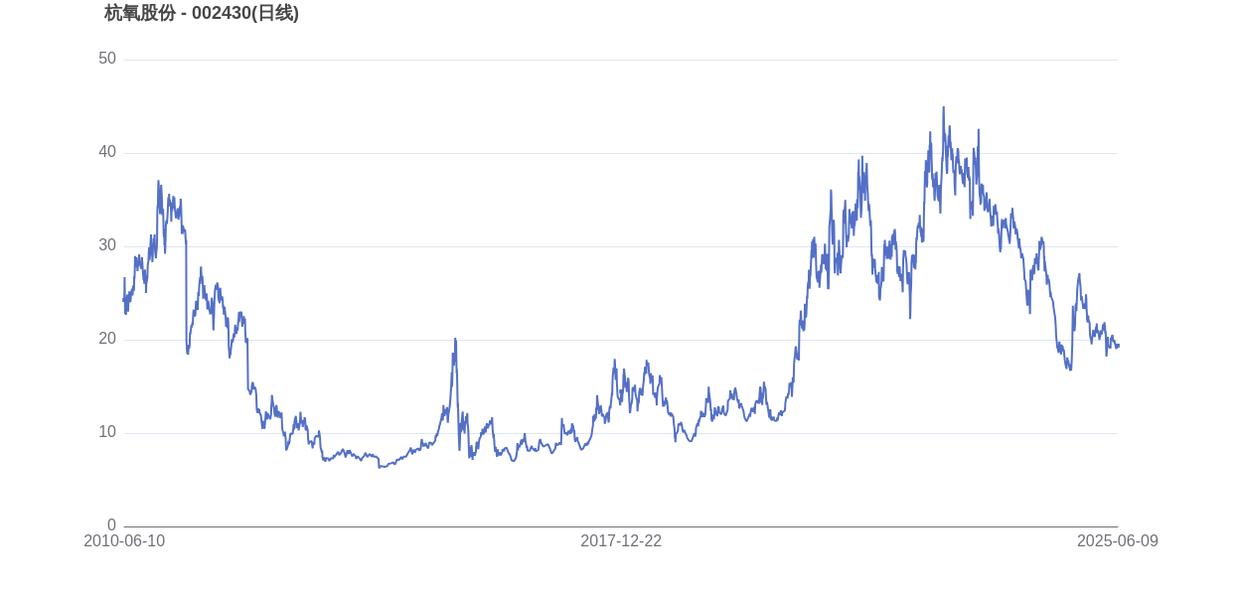 2022年10月27日,杭氧股份的市值巅峰达到445.03亿元,股价也顺应升至45.25元。而至6月9日收盘,杭氧股份的股价为19.37元,市值为190.58亿元,相比峰值时期市值减少254.45亿元,市值蒸发了57.18%。
