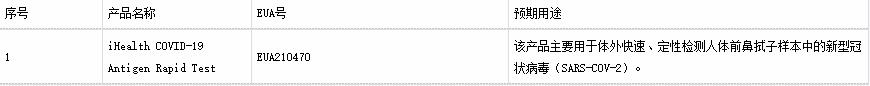公司2021年11月8日发布的《关于公司子公司新冠抗原家用自测OTC试剂盒获得美国FDAEUA授权的公告》显示,公司于北京时间2021年11月6日(周六)凌晨获悉,经美国食品药品监督管理局(FDA)授权,公司美国子公司iHealth Labs Inc.(以下简称“iHealth美国”)的新型冠状病毒(SARS-CoV-2)抗原家用自测OTC试剂盒(胶体金免疫层析法)获得应急使用授权(EUA),该授权的详细信息也已于同日在美国食品药品监督管理局(FDA)官方网站公示。该产品获得美国应急使用授权(EUA)后,可在美国公共卫生健康应急期间,在美国和认可美国EUA的国家/地区销售。