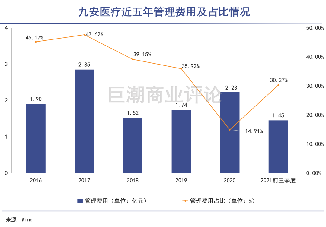 作为第一个吃螃蟹的人,九安医疗付出的代价也不小。2016年至2021年前三季度,其管理费用总计达11.68亿元,研发投入6.72亿元,研发支出占营收比例碾压鱼跃医疗,甚至长期超过国内医疗器械一哥迈瑞医疗。