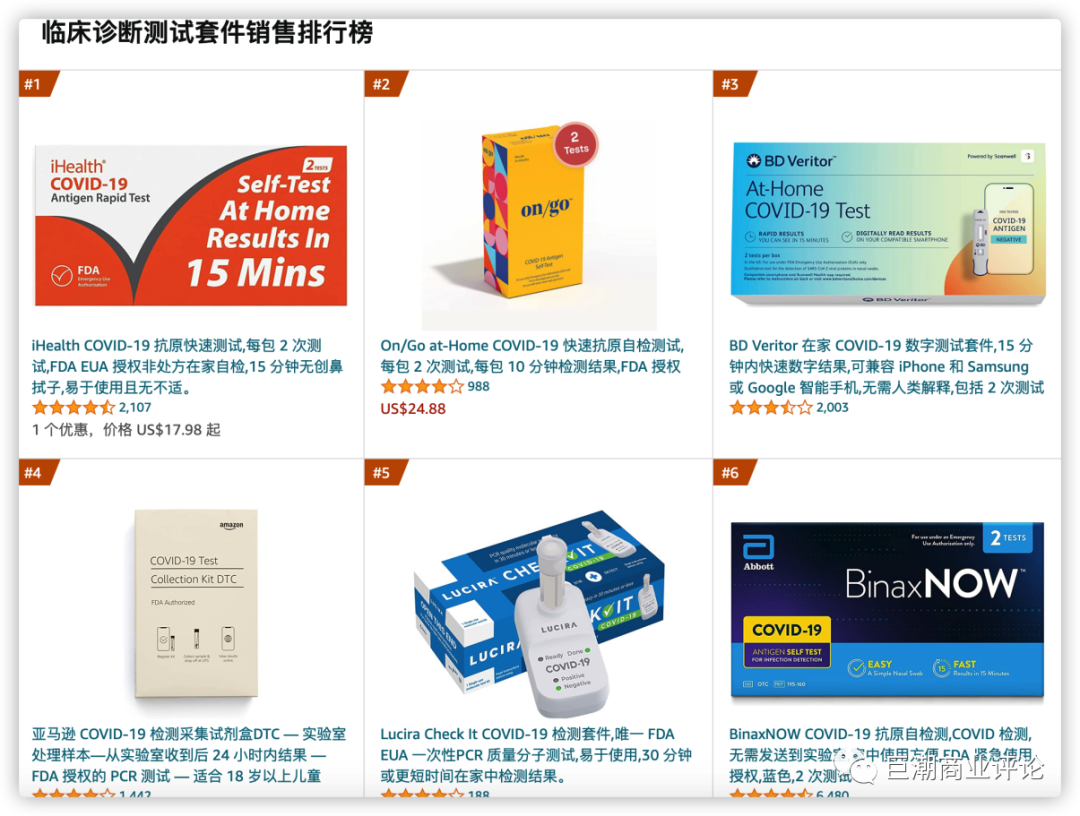 疫情加重,引爆新冠检测需求,Amazon美国网站的试剂盒基本处于脱销状态。