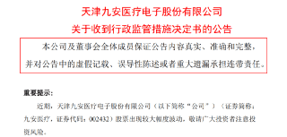 前不久,九安医疗公告称,于近日收到天津证监局发给公司的《行政监管措施决定书》,这样的利空也没有阻挡投资者的热情。