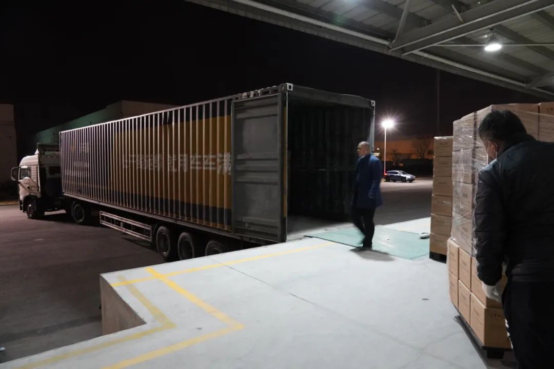 疫情就是命令,时间就是生命。在保障国内防疫需求的问题上,九安历来的宗旨就是“不计成本,全力支持”,这次也不例外。一场争分夺秒的发货“战斗”,就这样在夜色中紧张拉开了帷幕。不到两个小时,当时针指向了17日凌晨0:30时,第一辆货车开始装箱。半小时后,车门关闭,车辆随即疾驰而出,向着长春进发。夜风虽冷,但灯火通明的仓库中,大家工作的气氛却热火朝天。截止3月17日下午14:20左右,最后一辆货车装货完毕,至此,满载1000万人份iHealth新冠抗原检测试剂盒的27辆货车全部出发并如数运抵长春,九安医疗再次圆满完成了助力国内防疫的物资调拨任务,全力支持吉林打好防疫攻坚战。
