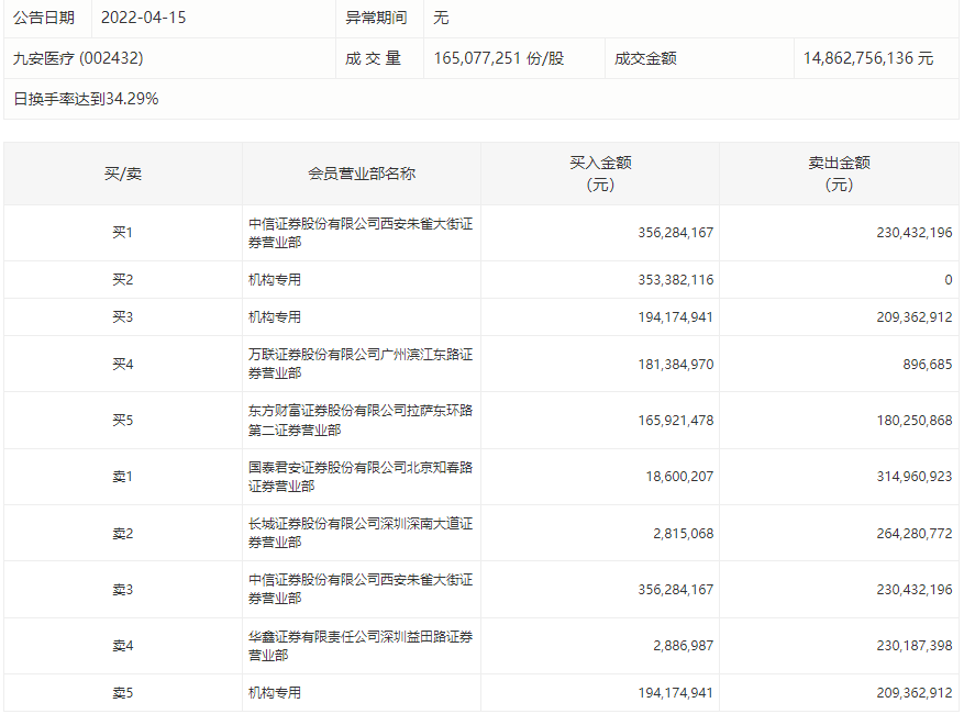 其中,中信证券西安朱雀大街营业部买入3.56亿元并卖出2.30亿元,一机构净买入3.53亿元。
