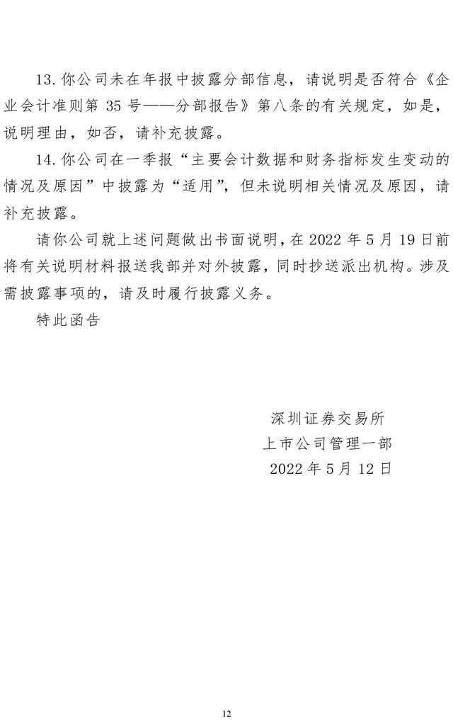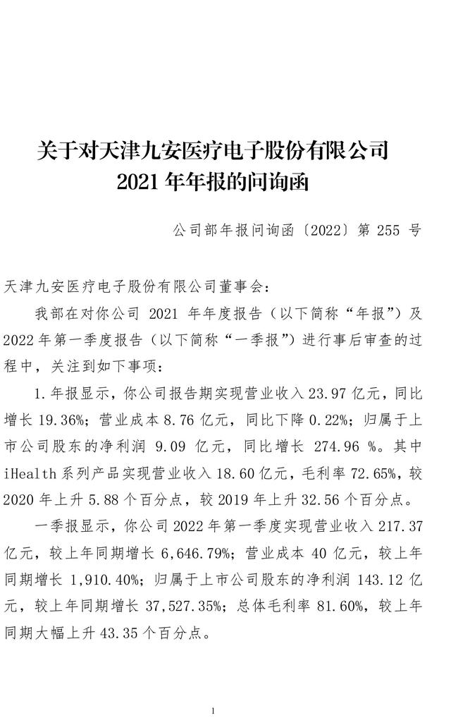 九安医疗(002432)5月12日午间公告称,收到深交所下发的年报问询函,要求说明公司试剂盒产品业务模式与同行业公司是否存在显著差异;试剂盒产品毛利率水平较高的原因及商业合理性。
