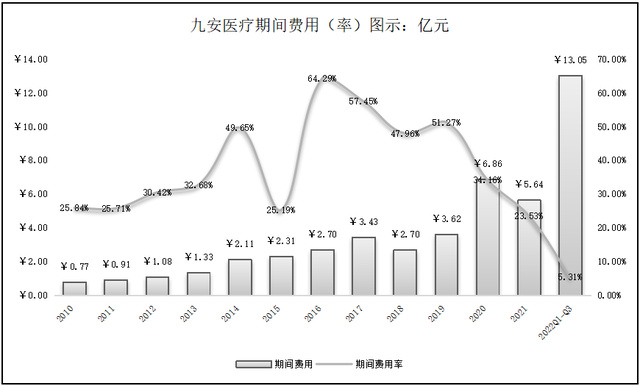 九安医疗期间费用总体呈现上涨态势,2018 年经过“降本增效”有所下降(但主要是裁减了480名员工和减少了研发支出,从 2017 年的 1879 人锐减至 2018 年的 1399 人),2019 年又重回增长;2020 年起受疫情影响收入激增,期间费用虽然增长但低于收入增速,因此期间费用率在高基数效应下有所下降。