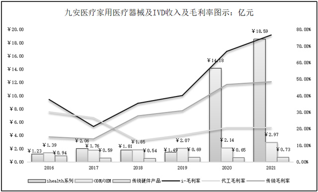 从九安医疗上市前后的业务收入规模可以看到,公司在为欧洲企业做代工之外,自有品牌“九安”和美国子公司品牌“ihealth”系列产品增长乏力,缺乏核心竞争力,收入规模长期维持在一个较小规模上。