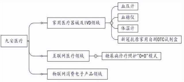 九安医疗早期通过10多年海外代工业务的积累、上市后募资投入后,逐渐形成三大业务板块:家用医疗器械及IVD(体外诊断仪器)领域、互联网医疗领域和物联网消费电子产品领域;多年来执行打造爆款产品和“O+O”糖尿病诊疗照护双主线战略。