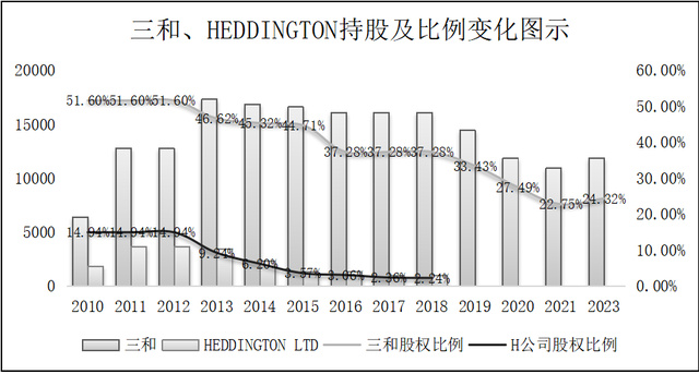 H公司减持完,控股股东三和随即减持,持股数量自2019年底的1.44亿股(占33.43%)下降至2021年底的1.09亿股(占22.75%);2022年5月通过约定式回购增持950万股后提升至1.18亿股(占24.72%);半年后就在2022年11月抛出963.3万股减持计划;据2023年2月25日公告,三和公司目前持有公司1.17亿股(占24.32%)。