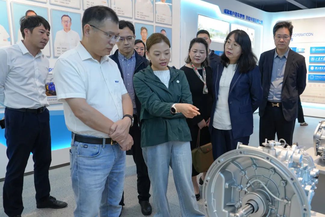 陈玉涛一行走访了万里扬位于新能源汽车小镇的产品展厅和生产车间,边走边听边看。任华林介绍了公司的发展历程、生产经营、产业布局、技术创新、数智化转型及海外业务拓展等情况。陈玉涛对于万里扬积极推进“管理数字化、生产智能化、产品智慧化、能源绿色化、市场国际化”战略,不断加大产品创新力度和研发投入,包括新能源汽车核心零部件、总成等多项核心技术实现突破,多项关键零部件实现自制,打破国外垄断的做法给予肯定。