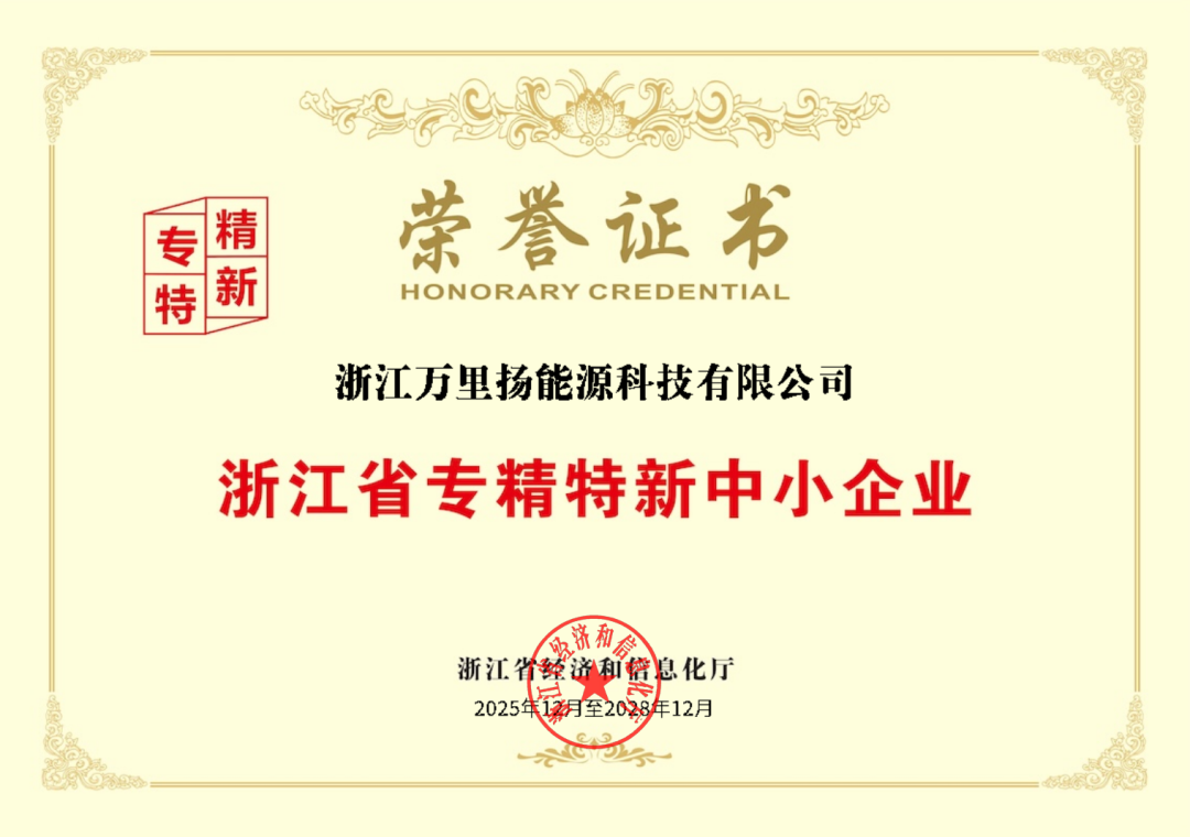 近日,浙江省经济和信息化厅公布了2025年第二批浙江省专精特新中小企业认定名单,浙江万里扬能源科技有限公司(以下简称“万里扬能源科技公司”)荣膺其中。