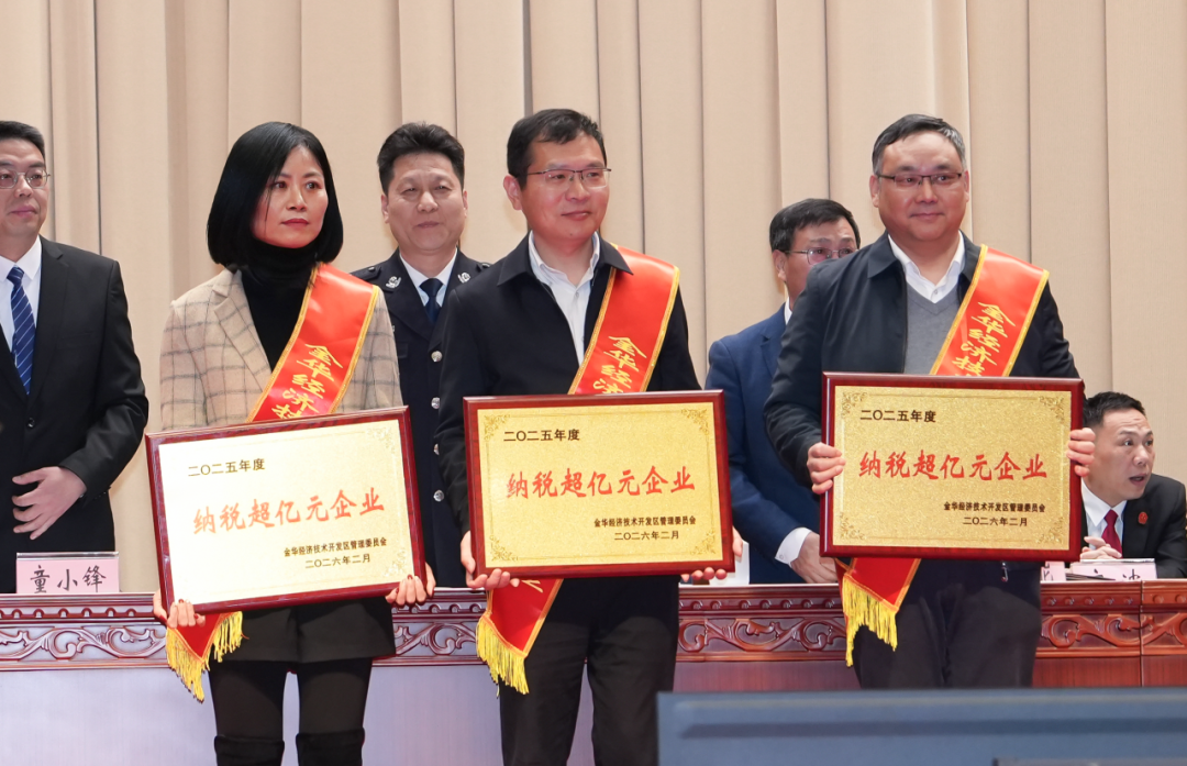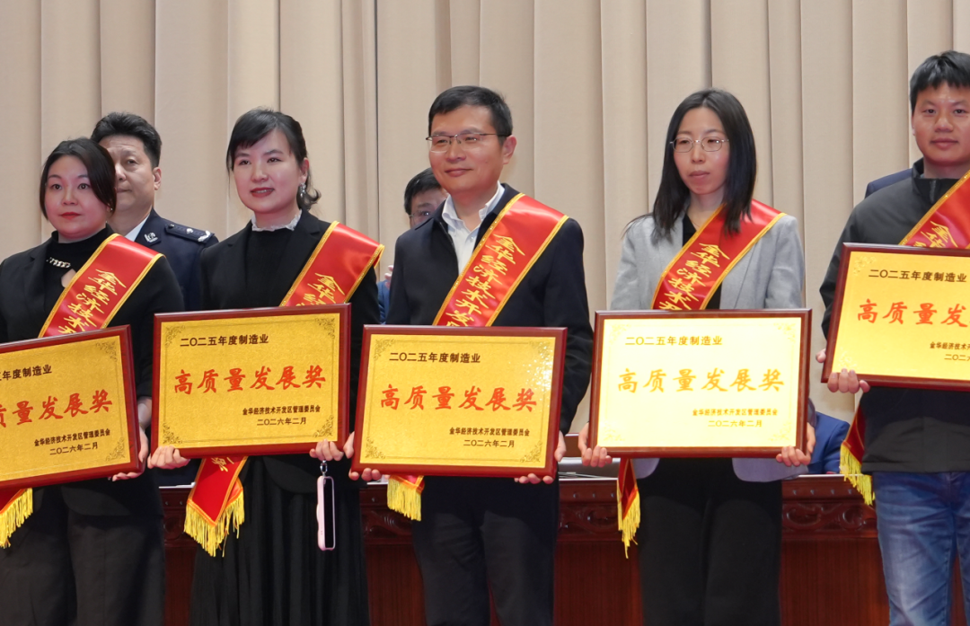会上,浙江万里扬新能源驱动有限公司荣膺国家专精特新“小巨人”企业、2025 年度金华开发区纳税超亿元企业和 2025 年度金华开发区制造业高质量发展奖三项大奖。企业已连续三年纳税超亿元,为开发区经济社会发展作出了重要贡献,并通过推进智能制造、数字化管理,实现效益稳步提升、综合能力持续强化。这不仅是金华开发区对万里扬过去一年工作的高度肯定,更是对其在推动制造业转型升级、助力区域经济高质量发展中突出贡献的充分认可。