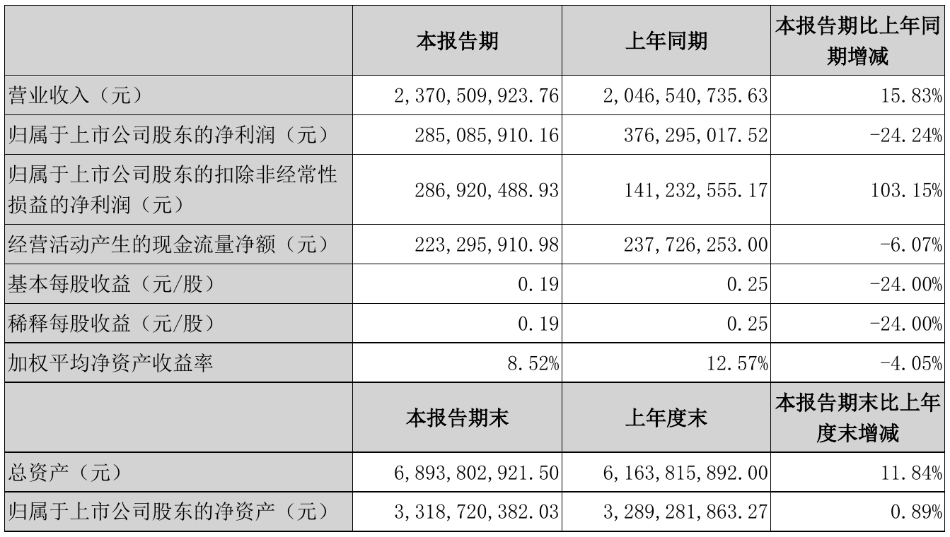 挖贝网8月24日,兴森科技(002436)近日发布2021年半年度报告,报告期内营业收入2,370,509,923.76元,同比增加15.83%;净利285,085,910.16元,同比净利减少24.24%。