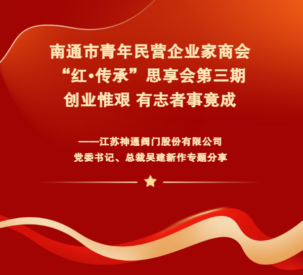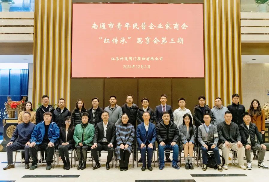 在企业发展的长河中,经验的传承犹如灯塔,照亮后来者前行的道路。2024年12月2日,一场意义非凡的专题分享会暨南通市青年民营企业家商会第三期“红?传承”思享会在江苏神通阀门股份有限公司成功举办。此次活动旨在推动青年企业家传承前辈创业智慧、弘扬红色精神,为南通市的经济发展注入新的活力。公司党委书记、总裁吴建新作为本期分享嘉宾,讲述了自己创业初期的艰辛与挑战,回顾了企业从无到有、从小到大的发展历程,以及如何在激烈的市场竞争中脱颖而出,建立起行业领先地位。商会党支部书记俞佳丽,执行会长吴昱成、沈琦博,常务副会长蔡畅,副会长刘群、丁燕、应灵通、周祥祥、吴鸿泽,副秘书长陈赟、阚能等30余位会员参加此次活动。