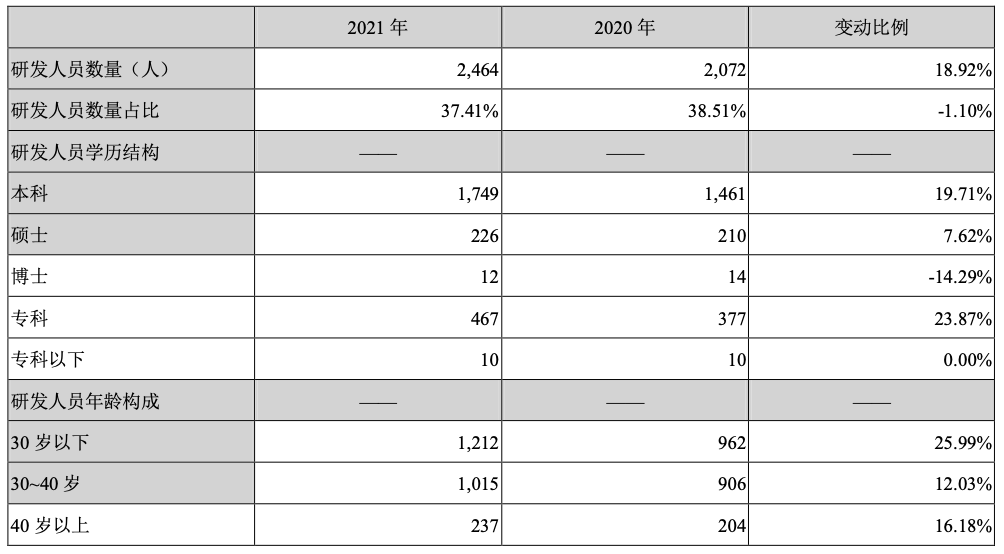 研发人员共 2464 人: