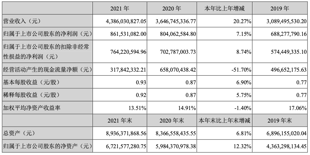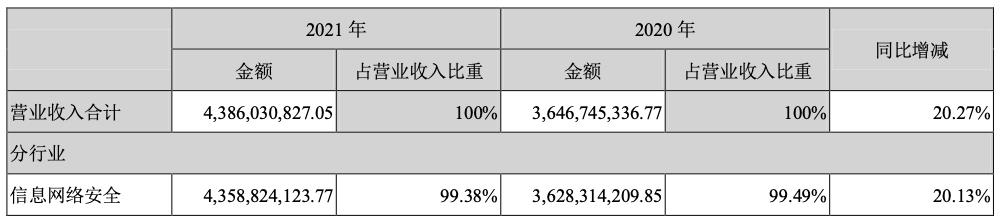 启明星辰?2021年营收43.86亿,同比增长20.27%;净利润8.62亿,同比增长7.15%。