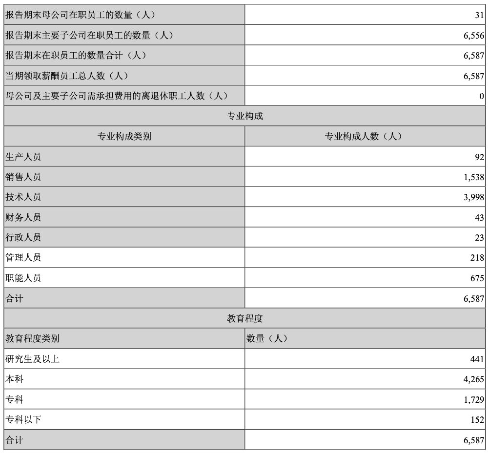 员工总体2020年5381人,2021年6587人:
