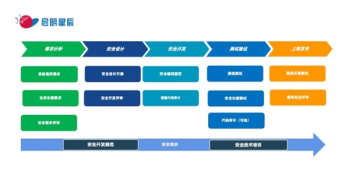 以应用开发生命周期的架构为基础,将安全设计、安全编码、安全测试及安全事件响应的传统安全技术,融入到产品需求分析、架构设计、开发实现、内部测试、第三方测试及人员知识传递等应用开发生命周期的各个阶段中,系统地识别、消除各个阶段可能出现的安全风险。