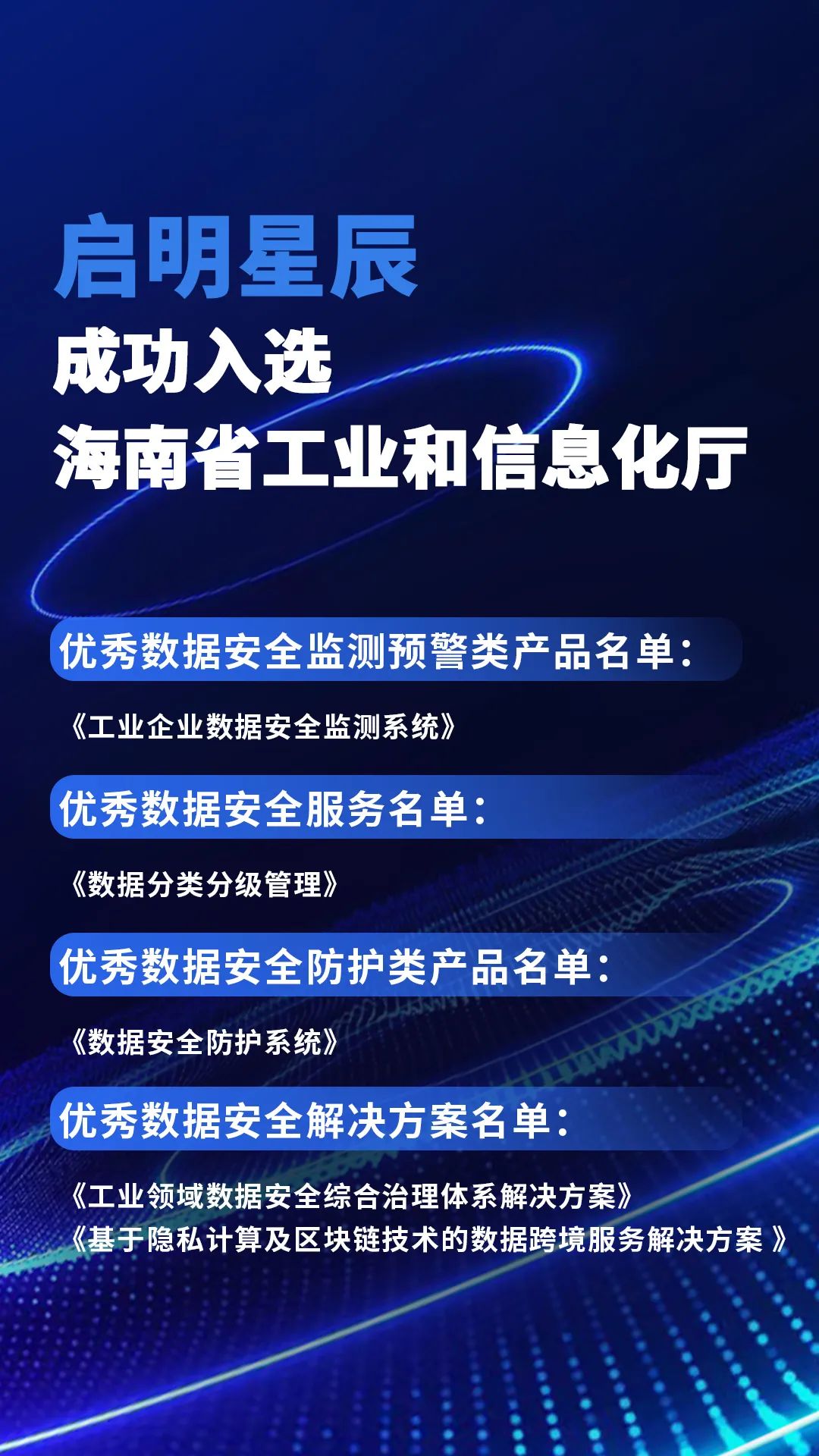 近日,启明星辰旗下多款产品、服务及解决方案经过企业申报、审查和专家评审等多环节评选,成功入选海南省工业和信息化厅《工业领域数据安全优秀产品、服务和应用解决方案》名单。
