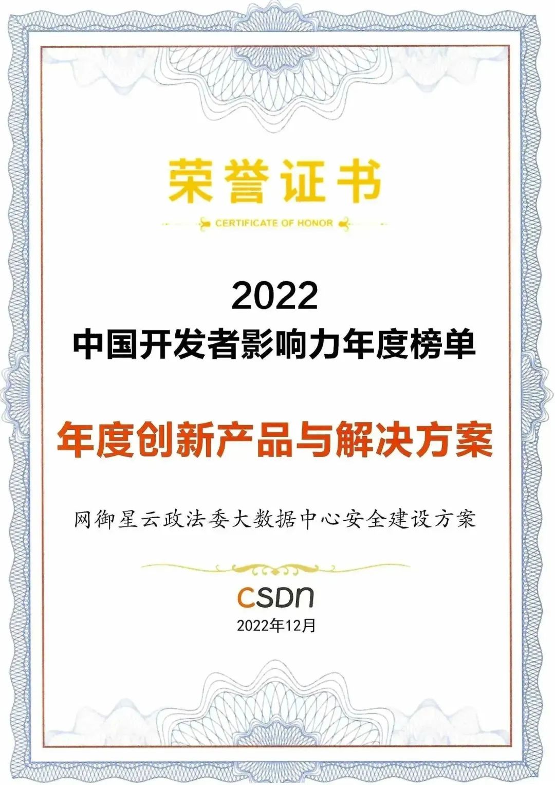近日,“CSDN 2022 中国开发者影响力年度榜单”正式发布。启明星辰新型智慧城市安全运营服务方案、启明星辰数据安全流通解决方案、网御星云政法委大数据中心安全建设方案一举获得“年度创新产品与解决方案”三项大奖。