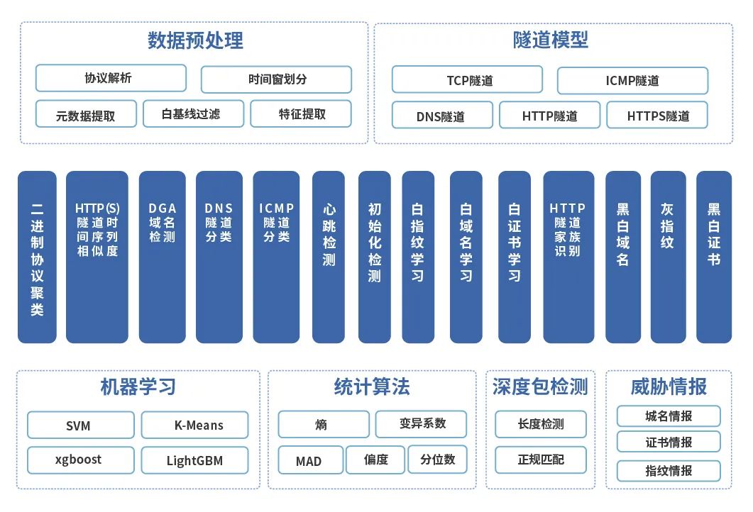 1、时间序列检测模型:主要针对HTTP(S)隧道的初始化过程、心跳过程进行检测,对不符合HTTP(S)隧道特点的流量进行过滤和识别。
