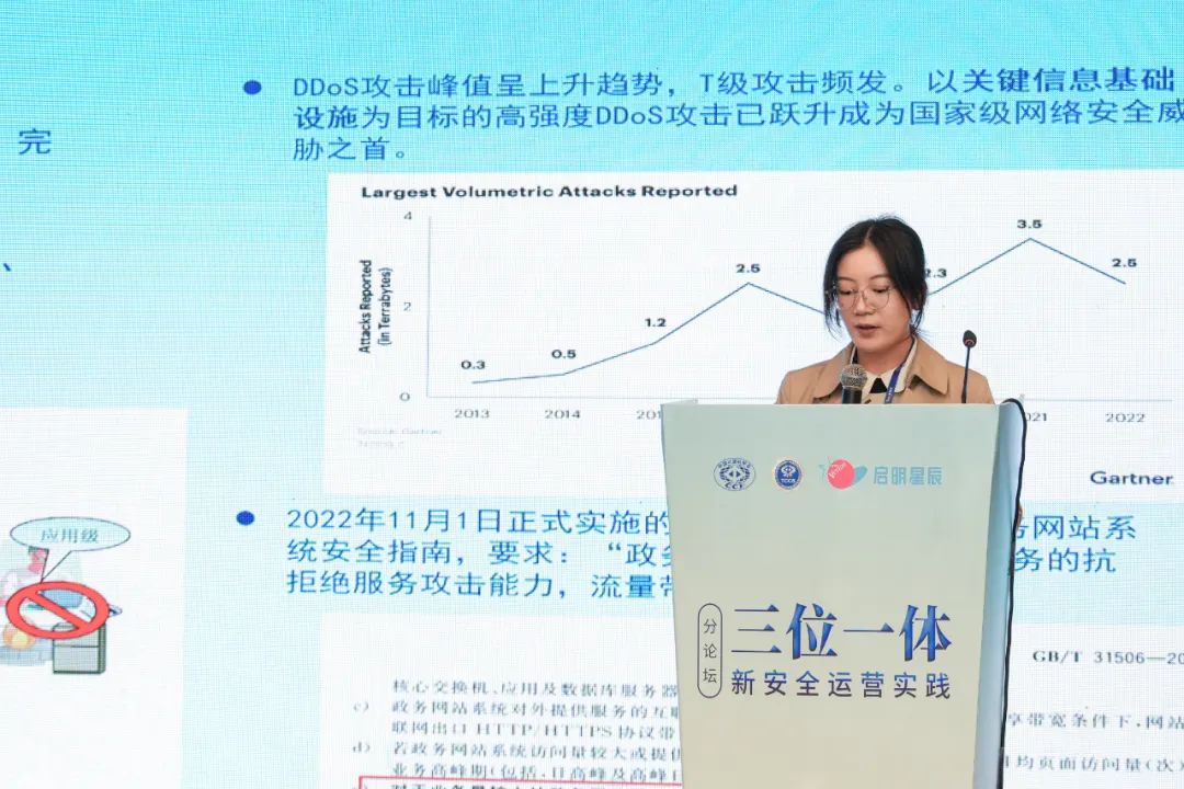 长沙市智为信息技术有限公司首席运营官邓懿智详细介绍了“三位一体”新安全运营实践背景下的抗DDoS思路,提出将云防护与硬件抗D有机结合,实现从云到端全链路防护,同时引入“零信任”防护概念,有效避免源站IP泄露导致攻击绕过云防护,并通过发挥SaaS平台灵活弹性的特性,集成云抗D、云监测、云WAF等功能模块,全方位保障用户业务安全。
