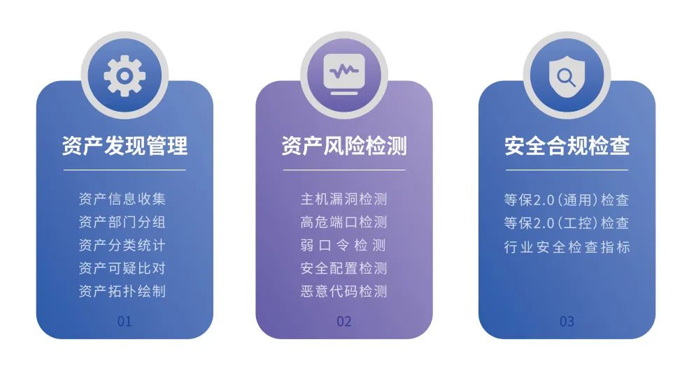 3、功能全面:工具箱集资产发现管理、资产风险检测(漏洞、端口、弱口令、配置、恶意代码)、安全合规检查于一身,满足用户各类网络安全全面检查需求。