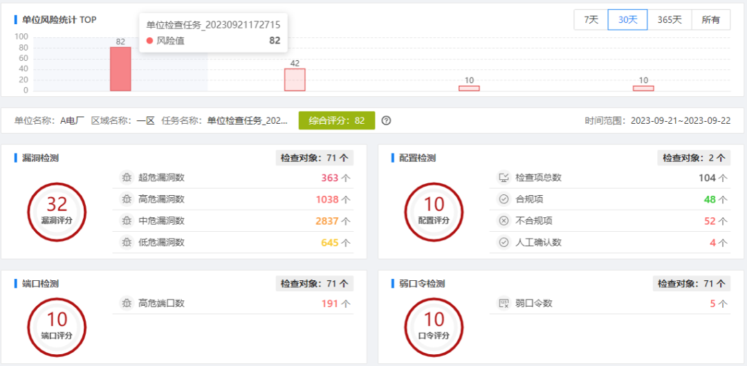 6、全局管理:工具箱支持对被检查单位系统的整体风险做评分与排名管理,满足用户对监管或运管的单位系统安全风险进行全局管理和快速锁定。