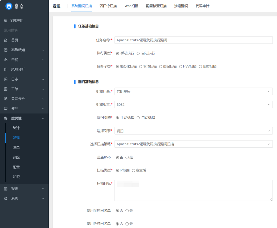 建议一:启明星辰天镜脆弱性扫描与管理系统升级最新版本