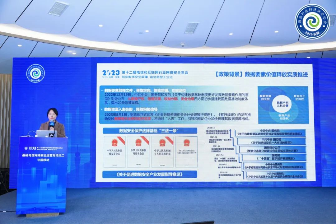 近日,由中国通信企业协会和中国信息通信研究院共同主办,中国通信企业协会通信网络安全专业委员会负责承办的“2023年(第十二届)电信和互联网行业网络安全年会”在安徽合肥成功举办。启明星辰集团数据安全专家张妮受邀参会,并在中国移动分论坛以《构建价值驱动的数据流通安全与防护体系》为题发表主题演讲。