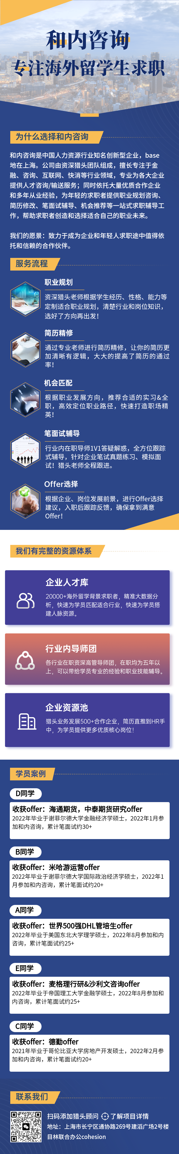 *文章由和内咨询整理发布,我们致力于优秀求职干货文章的交流分享,若涉及版权问题,请联系微信:J2457081166