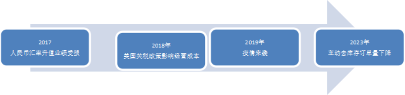 2022年开始全球航运体系逐渐正常化,堵塞在路途上的大量产品也到达了包括大型商超在内的渠道零售商,公司顺势而为,2023年大规模主动去库存,带来的摆锤效应(Overreaction)导致公司订单大幅下降。
