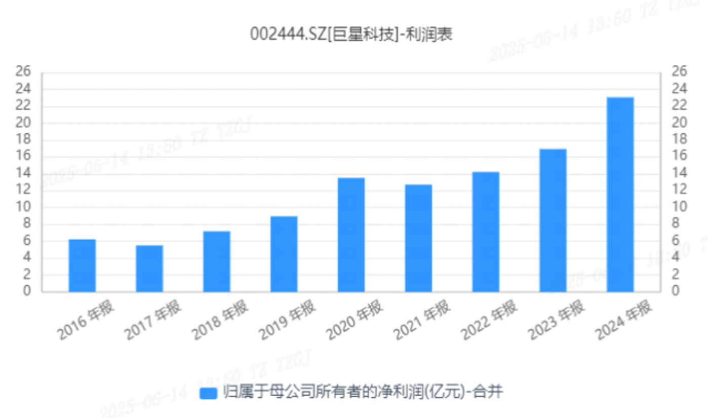 公司业绩的持续增长无疑是吸引投资者的关键。2024年,巨星科技实现营收147.95亿元,同比增长35.37%;归母净利润达到23.04亿元,同比增长36.18%。并且过去三年间,公司一直维持着两位数的增长态势,展现出强大的发展韧性。