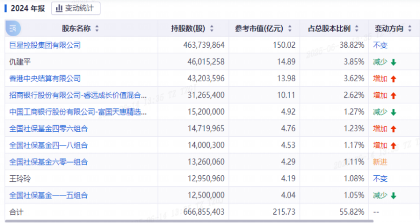 从2024年年报的股东持仓数据来看,巨星科技的股东阵容格外引人注目。前十大股东名单中,4家全国社保基金赫然在列,这些基金在投资者眼中常被视为“长线资金”,近几年对巨星科技持续加注,足见其对公司的信心。