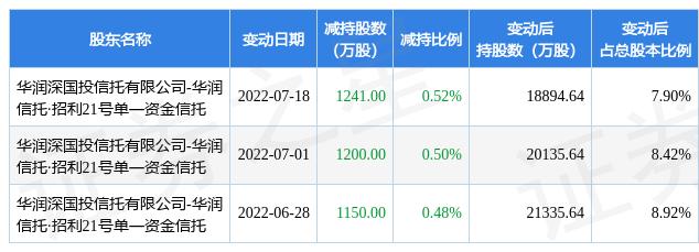 7月19日中南文化发布公告《中南文化:关于公司持股5%以上股东减持比例达到1%暨减持计划实施完毕的公告》,其股东华润深国投信托有限公司-华润信托·招利21号单一资金信托于2022年6月28日至2022年7月18日间合计减持3591.0万股,占公司目前总股本的1.5014%,变动期间该股股价下跌1.72%,截止7月18日收盘报2.29元。