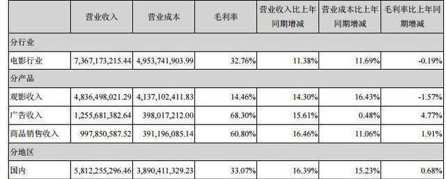 财报称,报告期内,万达电影实现票房50.15亿元,同比增长15.8%,观影人次1.19亿,同比增长18.3%,其中国内票房41.75亿元,观影人次1.07亿,境外票房8.4亿元,观影人次1181.25万人次。公司票房、观影人次、市场占有率等指标继续保持全国领先地位。