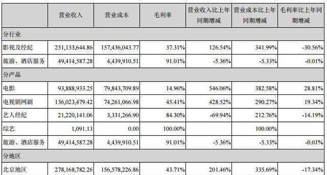 不过相比于中南文化,北京文化的转型还是相对成功的。今年上半年,北京文化与影视相关的电影、电视剧网剧、艺人经纪、综艺四大业务合计实现营业收入2.5亿元,占主营业务的83%左右,而北京文化转型之前的主力业务旅游、酒店服务则营收4941千万,占比16.3%。但对北京文化来说,还是应该增强持续稳定输出爆款的能力,才能在影视市场站稳脚跟。