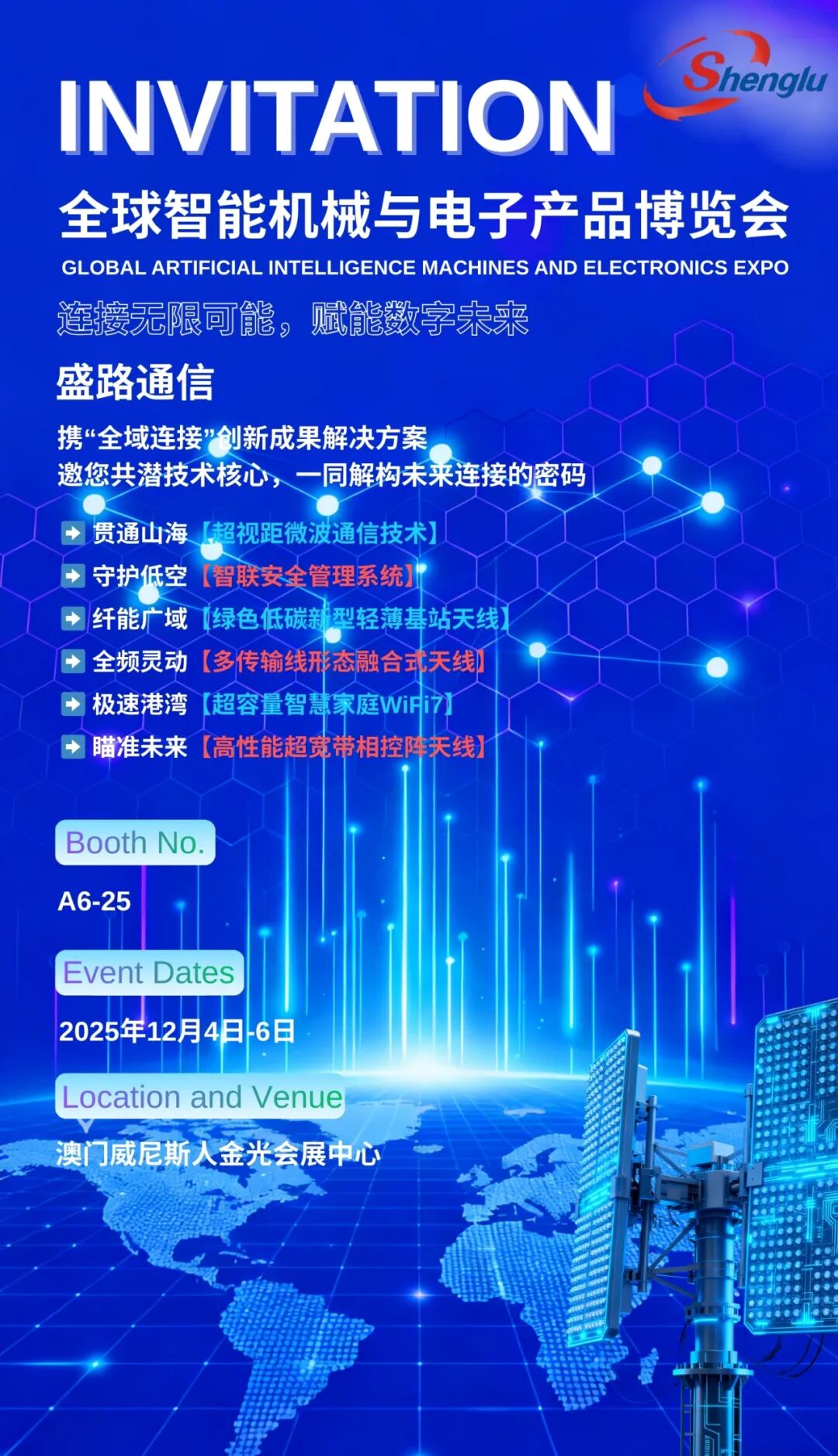 我们诚挚邀请您莅临 盛路通信 展位(展位号:A6-25),在这里,您将零距离体验从地面到低空、从家庭到全域的智能化连接解决方案,深入了解技术突破如何重塑产业生态格局。