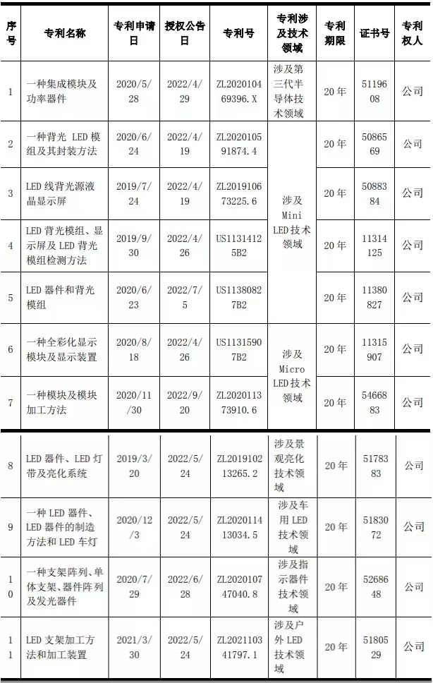 国星光电1月10日公告,公司取得一种集成模块及功率器件等11项发明专利证书。其中6项涉及Mini/MicroLED技术领域专利,1项涉及第三代半导体技术领域专利。