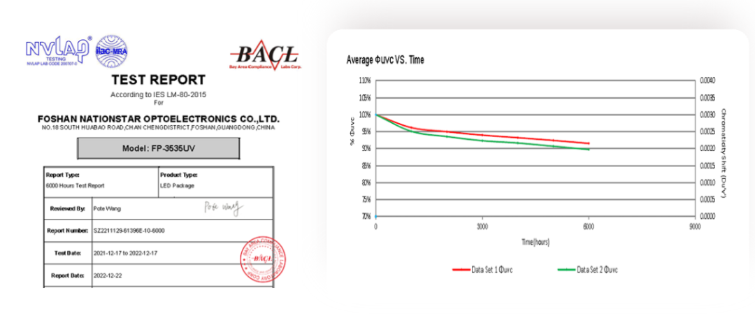 ■顺利通过LM80认证,在55℃典型电流条件下老化,6000小时光功率维持率达到90%,产品可靠性有保障;