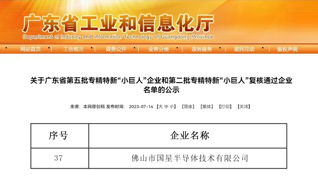 近日,工信部第五批国家专精特新“小巨人”企业公示结束,国星光电全资子公司国星半导体成功入选,标志着创新能力、核心技术、发展潜力等方面得到国家级认可。