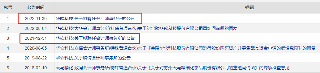 尤其是从时间上来看,一般来说公司年底扎帐以后年报审计正式开始,部分是春节后开始,主要时间是在从前一年年末到次年一季度前,年度报告就应该出来了。华软科技两次更换审计机构的时间都是靠近年底,时间上比较“突然”。